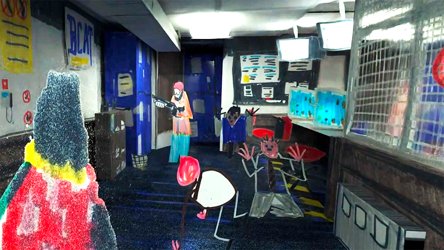 3D animated hand drawn sprites et performance, for death of GTA character Michael de Santa, his fake death and the real death of GTA 5